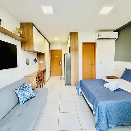 Nabízející soukromý plavecký bazén, apartmán Estudio Aconchegante Com Vista Para Piscina je umístěn 1 km od Piscinas Naturais da Praia do Cupe. Tento 1-ložnicový apartmán s kuchyní se nachází 30 minut chůze od centra města Pôrto das Galinhas.